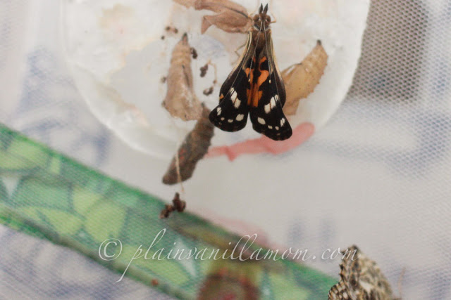 Here are a few pictures of our butterfly family from this year. I hope you enjoy them as much as we did. Raising butterflies is a project that, for us, never gets old. Mr. A enjoyed it so much this year we may even order another batch of caterpillars and have a second go of it later in the summer. It’s always amazing to see the transformation. The babycakes even enjoyed sitting with us watching the butterflies fly around their habitat on occasion. We had the added treat this year of being able to see one of the butterflies as it was emerging.