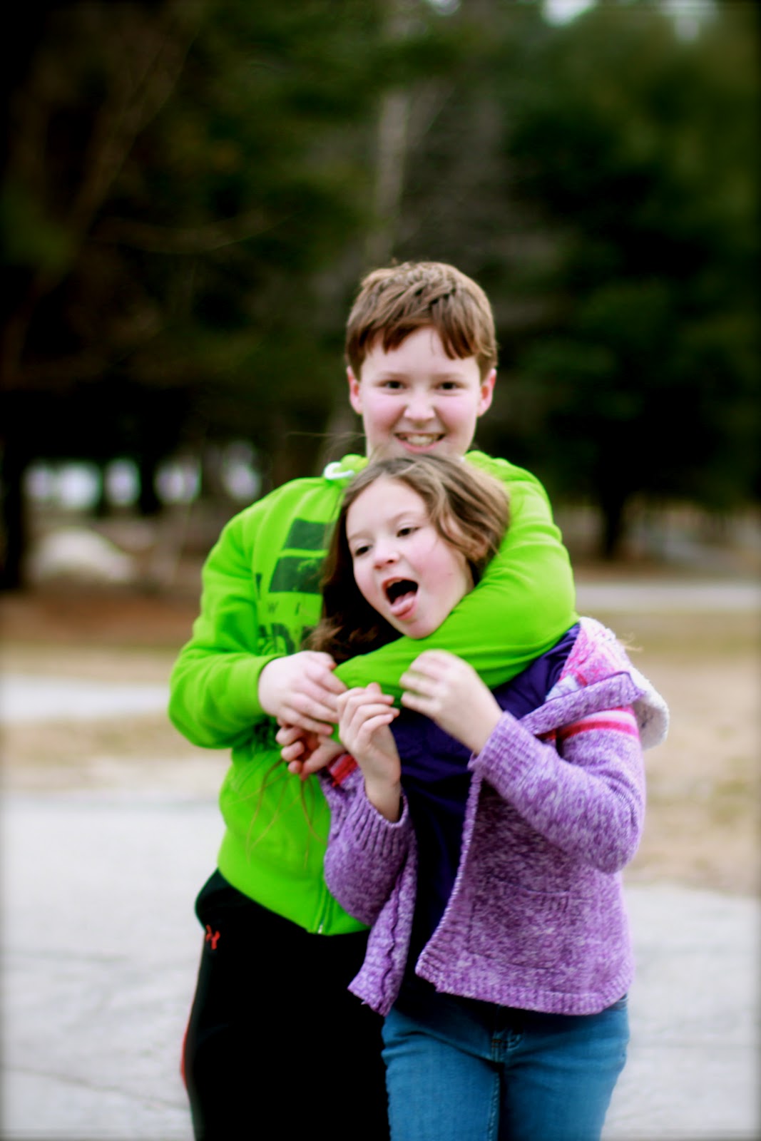 My two bonus kids (aka: steps), and two of Mr. A’s best friends. M is eleven and K is nine. As you can see…they love each other very much!