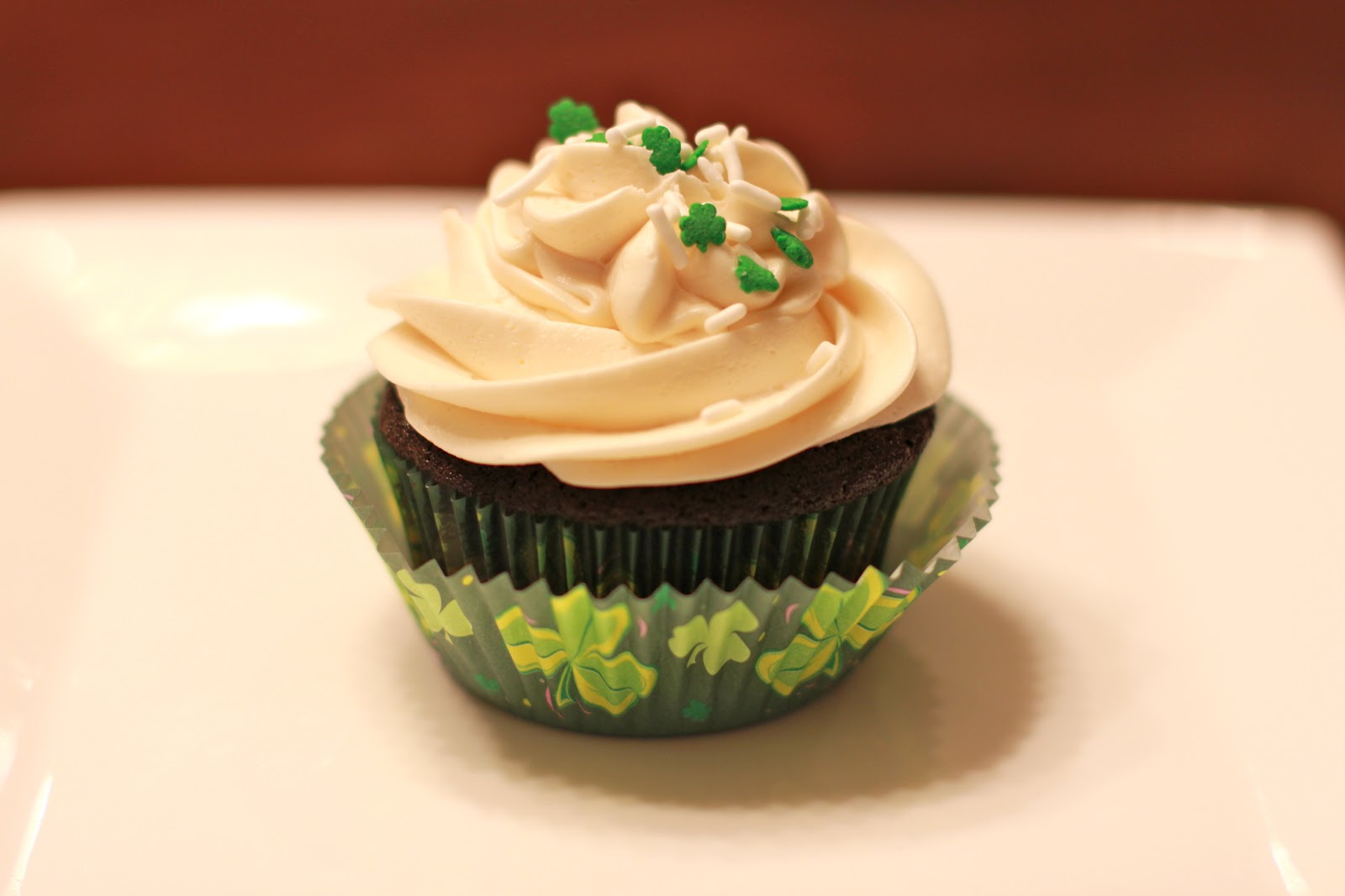 Here are the cupcakes. I call them the grown-up cupcakes…They are a chocolate Guinness stout cupcake (one of the best chocolate cakes this girl has tasted), with a irish whiskey, chocolate ganache center and a Bailey’s buttercream frosting. I found the recipe for them here in case you are interested. They were a little time consuming but very much worth the effort! Everyone raved about them, and I don’t think anyone ate just one!