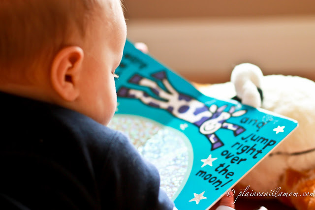 Do you ever wonder if the things we do as a parent sink in or make an impression? I know that we know they do, but aren’t there days where you just wonder if some of the things you do stick? I have felt this way about reading to the babe. I truly value a good book and it’s always been important to me that my children develop a love of reading. I remember going through this with ‘A’ when he was a baby and he now has a great love of books, read at an early age etc so I know I should worry, but I’m a Mom…that’s what I do! I remember the day I got validation from Addison that he was paying attention to what we were doing with books. I kept a basket of books in the living room with his toys and one day as we were sitting there playing he pulled out a book for me to read, and then another, and then another until the entire basket was empty and we had read every single book inside. That was my lightbulb moment with him. Yay! Successful parenting…my kid was going to like books. Well I’ve been going through the same thing lately with C. I started reading to him even earlier than I did with Addison. Sometimes though I really wonder if it’s getting through. Like with most babies I imagine, he rolls around, half pays attention half plays with his feet, grabs at the book and wants to chew on it, you know the drill. There are times when I’ve been discouraged because I’ve wanted to read him a book before bed but he’s too fussy to sit for it. To remedy this I started sneaking in stories while we played on the floor or during quiet time just before we go upstairs for a nap. Well the other day I had my “aha!” moment with him. We were at the bookstore shopping for books for his Easter basket. He was a little more than cranky that day, so in an effort to keep him entertained I handed him one of the books I had picked. The second he had that book in his little hands his mood changed and he began looking at it and “talking” to it. It was as though he was reading it. “ba ba ba ba”… How cute was that! My heart smiled. Something I have been doing for the last seven months is getting through :)