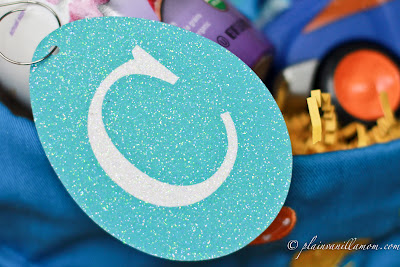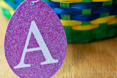 I found these cute little initial hang tags at Walmart to adorn their baskets. In hindsight I’m sure I could have made something like this myself with a little card stock, paint, glitter and tape. These may just be inspiration for a project for next Easter. Either way, still cute.