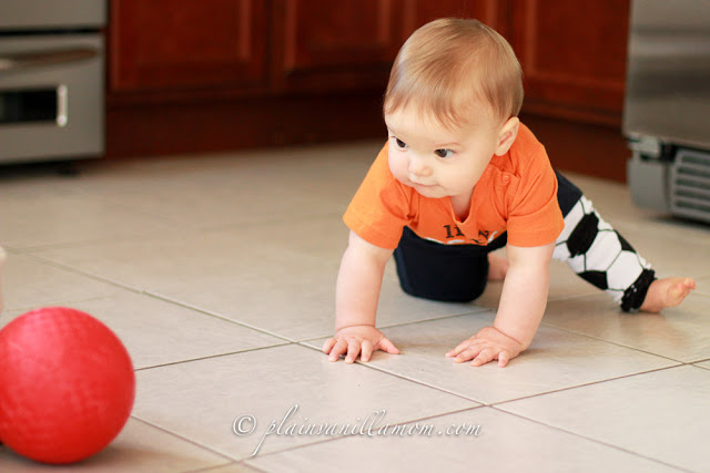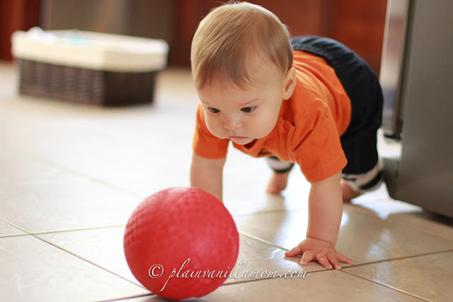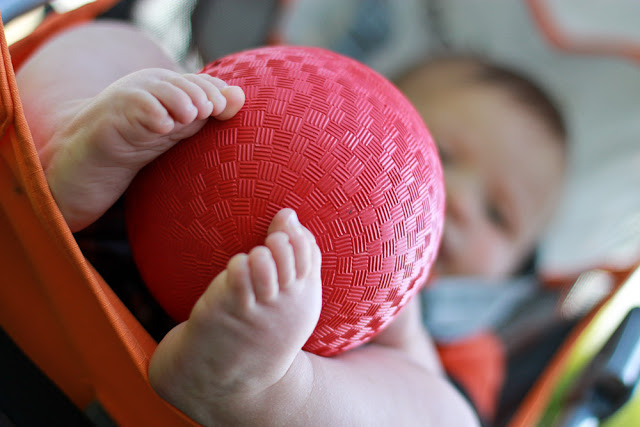 There’s nothing quite as classic as a big red ball. A quintessential toy of childhood if you will. I have been wanting to get C one of those traditional red playground balls for awhile. Instead I found something slightly better. It’s the red playground ball, but baby-sized. The perfect size for his little baby hands! I’m sure it’s still a HUGE ball to him :) He LOVES it! I can honestly say it’s one of his favorite toys. He has yet to grow tired of playing with it. It comes out at least once a day, every day, and has since a month or so ago when we got it.