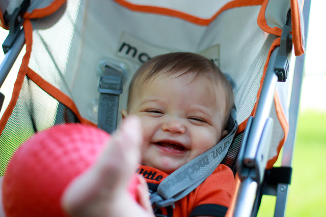 It’s also good for a mean game of pass when he’s in the stroller. It’s probably more accurately described as baby drops the ball and mommy picks it up (ie. the pick-up game) but I prefer to think of it as pass ;)
