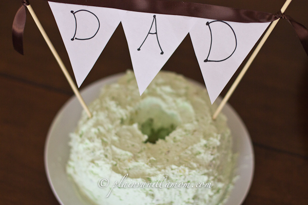 Seeing as it’s Father’s Day I thought I should probably give some recognition to the hubby. So, in honor of good old D.A.D, I bring you his favorite dessert. Angel food cake with Pistachio & Cool Whip frosting. Not only is this hubby’s favorite, it tends to turn me a bit nostalgic every time I make it. My Aunt used to make this cake every summer for my grandfather’s birthday as he was getting older and not allowed to have too much sugar. (she just bought all the ingredients sugar free). Every time I make it I am reminded of my grandfather. When I met the hubs he LOVED all things pistachio so I knew this was sure to be a hit. I was right, and it was! Now, it’s my go-to birthday cake for the hubs too :)