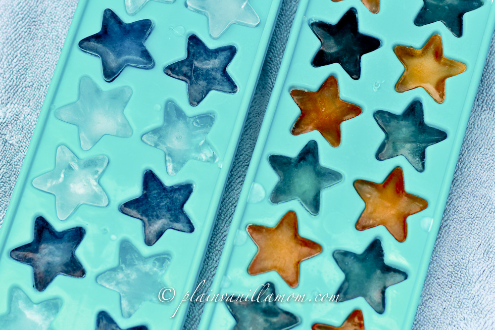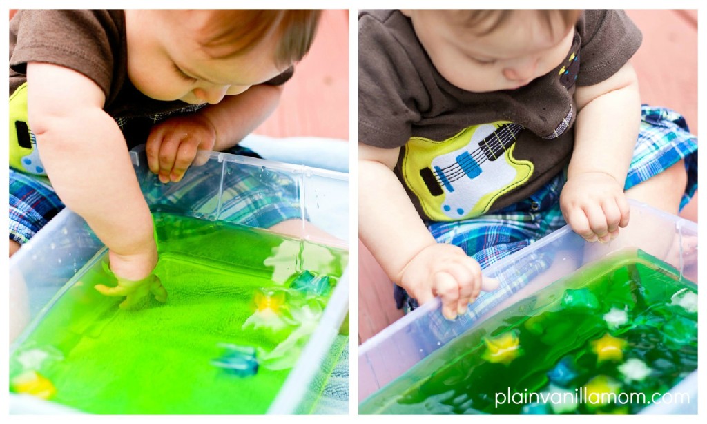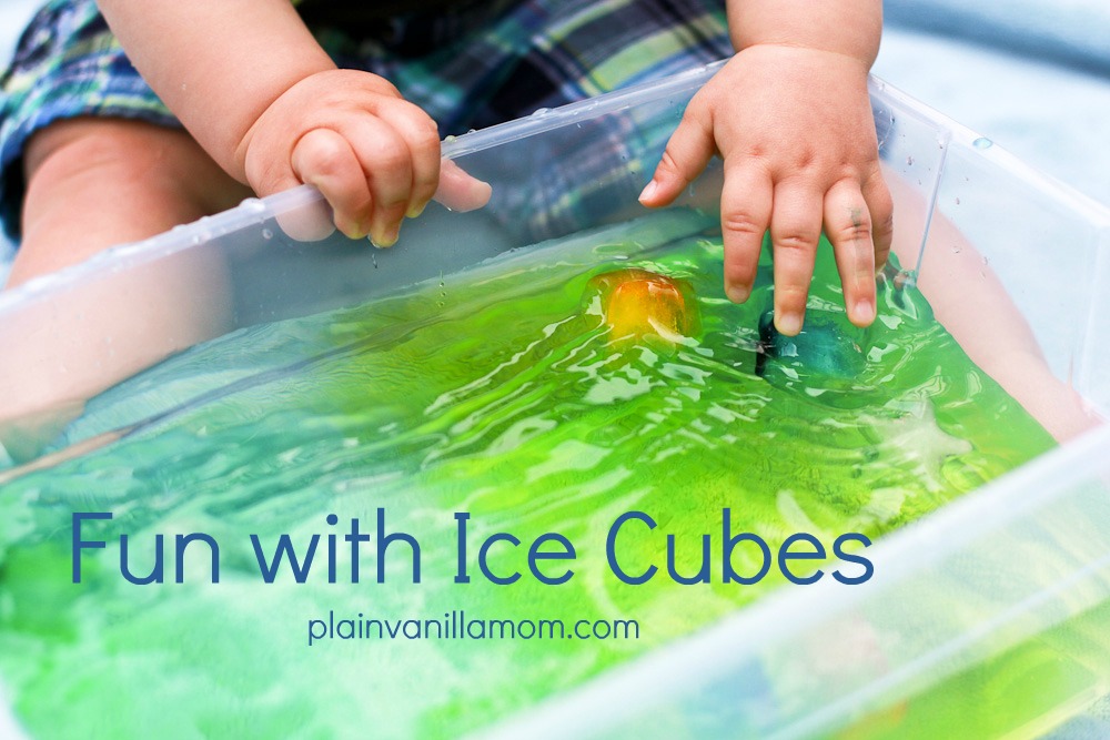 As the ice cubes melted he found the colored water pretty fascinating too. Not bad entertainment for a nine month old on a hot summer day! Oh and there’s a bonus in that I just realized this knocks one thing off of our summer bucket list… play with ice.