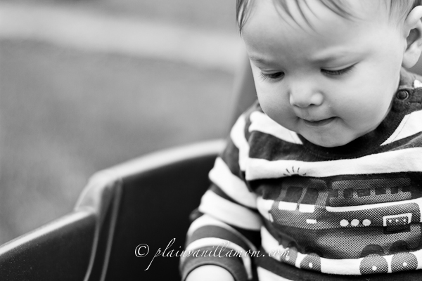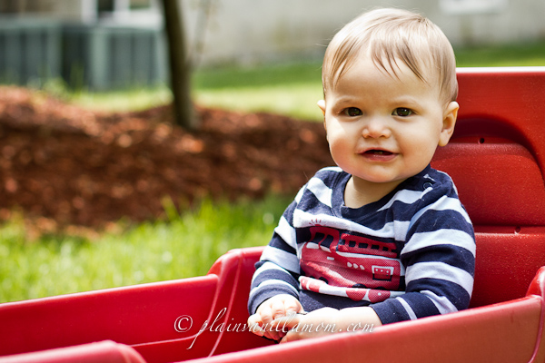 Oh baby boy, I can’t believe it’s been another month! You stood up today!! On nine months to the date I caught you standing in your crib. My have you grown! You are into EVERYTHING. You are crawling everywhere! I didn’t realize how un-babyproof we were. You make me smile Every. Single. Day. You have so much personality now. You say “dadada” all the time, and “mum mum” when you get really upset. You love to explore and have realized there is a world (or a house) beyond the small little spot that mommy sits you down in. You have ventured down the hall and out your bedroom door all unprompted. You are now into books and love to rock and snuggle and read at night. You are quite independent, or want to be at least. You take the book from my hands every night, hold it up in the air and “read” it, complete with babbling, before I can finish the story. You are a determined child (determined to pull all the papers off your brother’s bookshelf that is). That perseverance will do you well some day. Your soft blocks are one of your favorite toys. Your cheeks are growing ever kissable. I love the way your eyes light up when you see me, or dad, or your bothers and sister. You are enthusiastic and affectionate. If something makes you happy we know it. If you are unhappy you make that quite clear too! You seem to take in and study everything and you give a mean little fist bump when you get overly excited at snack time. It melts my heart the way you will crawl across a room to get to me or crawl up in my lap when I sit down on the floor with you. Watching you grow and interact with the world more and more each day has been a wonderful gift thus far. Looking forward to the what the next month will bring, but still wishing I could stop time. Love, Momma
