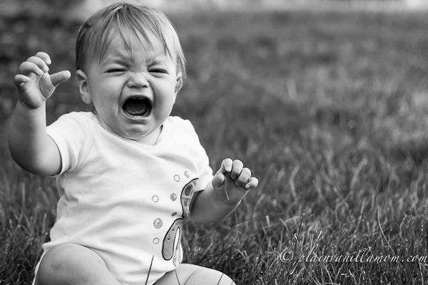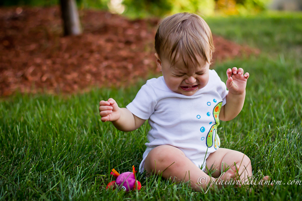 So the little guy is turning one very soon. By very soon I mean next week. Yikes! With that in mind I have been trying to scope out our yard for the best spot to do his first birthday photo shoot. I decided I would take him out a few times prior to get him used to the idea and also give myself plenty of practice shots to find the right time of day, light, etc. This was take one… I’m thinking he’s not a fan yet.