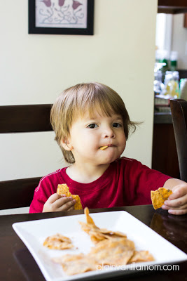Understandingly skeptical since Mom happily sat me down in front of a full bag of chips. What’s the catch? Not being one to look a gift horse in the mouth he dove right in. It would appear the rule that two chips are definitely better than one applies…