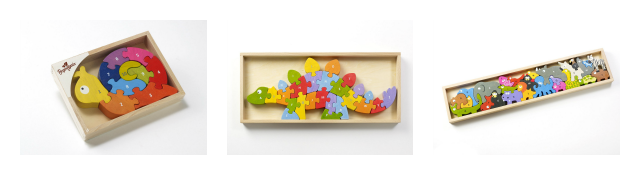 1. Begin Again Toys, there are quite few choices with a range of price points. My favorite is the Alphabet Parade but I’m quite sure Mr. C would love the dinosaur.