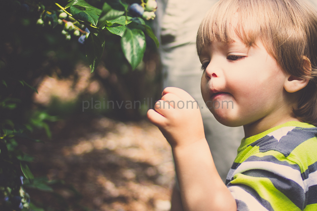 The best way to spend family time on a weekend in the summer? Blueberry picking of course. We love it so much we often go multiple times throughout the season. This year was Mister C’s first time picking blueberries and oh boy did he love it. His idea of picking…straight out of our bucket.