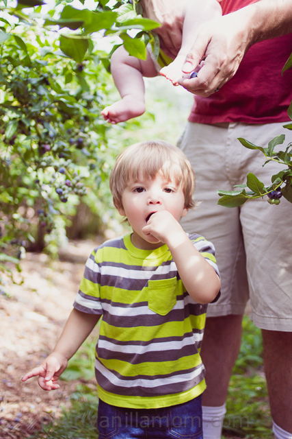 It was Little E’s first time blueberry picking too but I suspect next summer he will enjoy it more. I’m sure he thought it was grossly unfair that we were all eating and he was not.