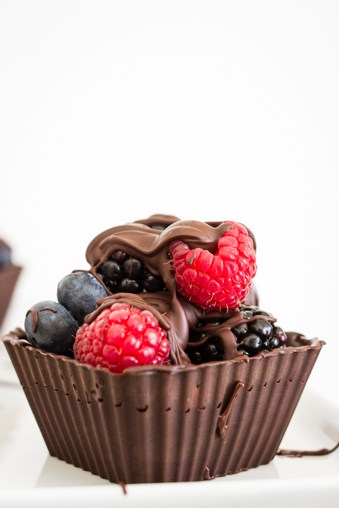 The other night the hubs brought home some to-die-for Godiva chocolate dessert cups filled with berries. The first thing I did was thank him and promptly eat said dessert. The second thing I did was begin to plot how I could recreate this chocolate berry goodness myself.