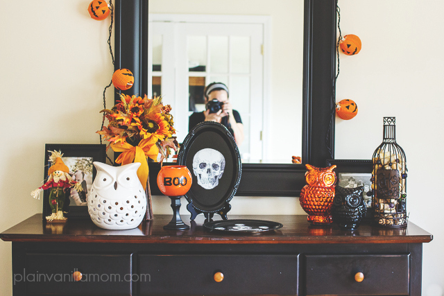 Seriously, how cool does this look? I am not lying when I say these were super quick and easy, and they made a huge difference in the Halloween display I have on the hutch in our dining room. I almost wish I had made more. I’m loving them as decorations but I would totally put treats on these for a Halloween party.