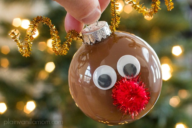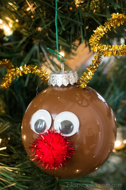 When I told you I was obsessed with homemade Christmas ornaments I wasn’t joking around. I’ve got one more DIY ornament for you before the big day. I think this one is my favorite this year! I am head over heels in love with the way our Reindeer Ornaments turned out. The kids thought they were super adorable and even though Mr. C really couldn’t help that much with these, he giggled on the side lines while he watched our reindeer come together.