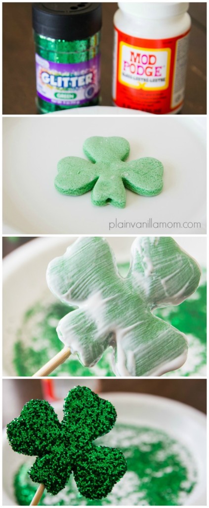These springy green shamrocks are doing wonders to brighten my days… which are currently filled with way to much snow and way too many sick children. Glitter makes everything better doesn’t it?