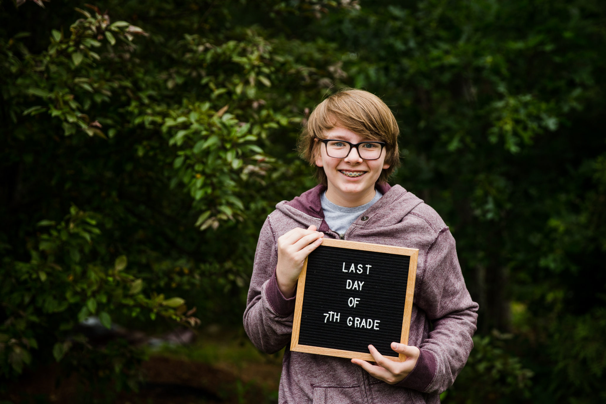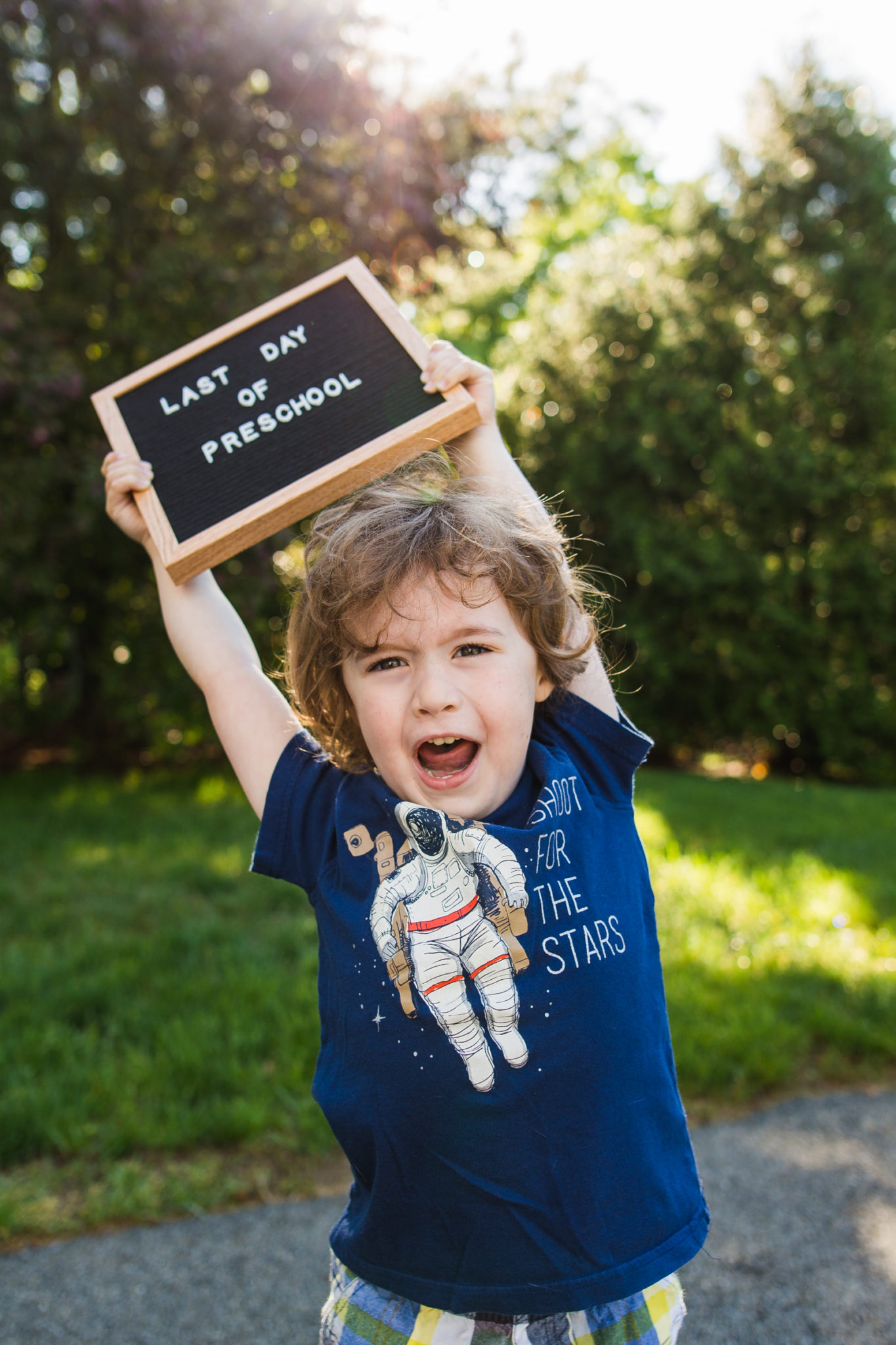 We’ve had a lot of last days recently so it has me thinking about all the little things we do to mark the moment. I always take a quick portrait of each of the boys on their last day both with and without a prop. I make them use the prop for fun and so years from now we can remember what grade they were in, but then I have them put it down and use the opportunity to get a good (dare I even say sometimes frame worthy) head shot. Think about it… they are usually in a fantastic mood and all smiles because …duh… it’s the LAST DAY OF SCHOOL! whoop whoop!