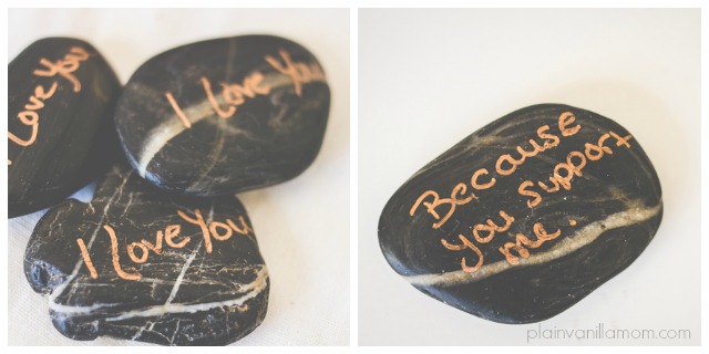 I wrote “I love you” on one side of the rocks and then a reason on the flip side.