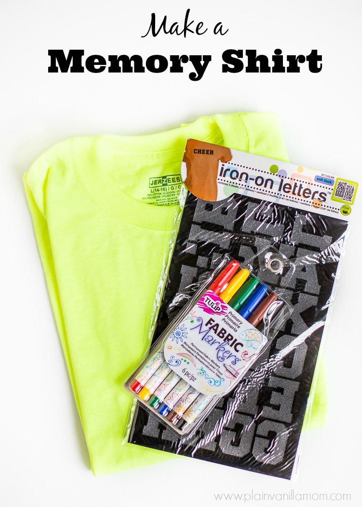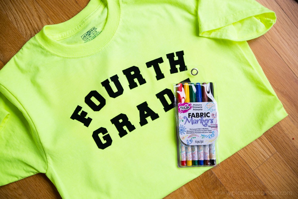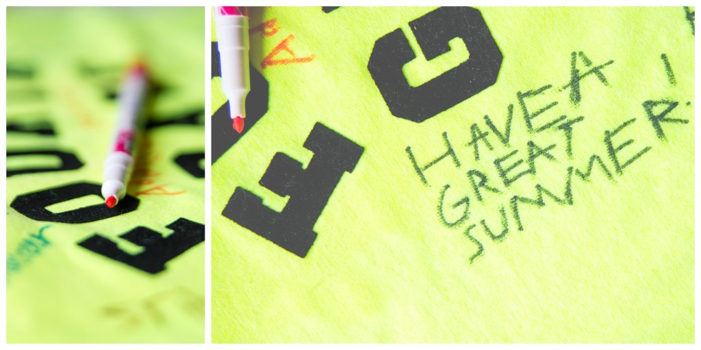 All you need to do is wash/dry the shirt first and then iron on your letters. I spelled out Fourth Grade on this one but you could easily do a “Class of” type shirt with this too. After I had the letters ironed on I sent my son in to school with the shirt and the fabric markers. The rest was up to him. He collected signatures and well wishes (and a few smiley faces) from his friends and teachers. I think he was a little skeptical when I first presented him with the idea but he said all his friends were really excited to sign his shirt. I can tell you he was all smiles about it when he came home from school with it signed. Now he’s got a really fun and unique keepsake in the form of this memory shirt from his fourth grade year. I am so excited I did this with him and I will definitely be doing this with all my boys going forward as they go through grade school. What a fun way to remember their school years. Typically I would have chosen to send this shirt in with him on the last day of school but I cheated a little and sent it in early so I could share it with you ;)