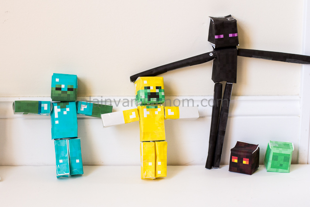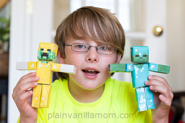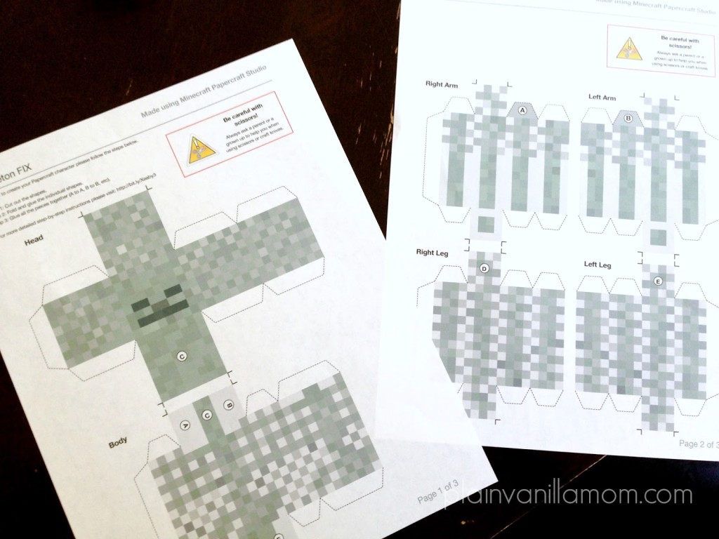 I have to admit I’m usually after Mr. A to stay off his iPod but the latest obsession is something that I can get behind. My oldest does not show his face on the blog very often these days, but this blog post is at his suggestion. He recently discovered a companion app for the ever loved Minecraft, Minecraft Papercraft Studio. Minecraft Papercraft Studio allows you to print out Minecraft character templates and bring them to life. You cut, fold, and paste your way to creating three dimensional minecraft characters and scenes. Hmmm… sounds a little bit like a modern day version of paper dolls to me (but don’t tell him that). They start off looking a little something like this…