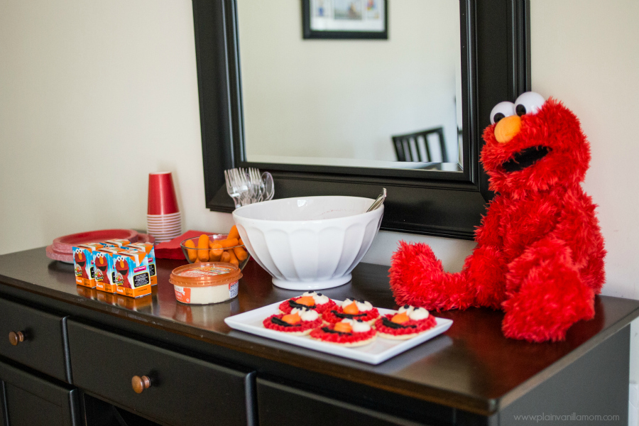 They were the perfect little Elmos! All I had to do was cut eyes & a nose out of card stock (or construction paper) and adhere them with glue dots just so. I’m telling you these are a must if you are having an Elmo party. They even look furry like Elmo! Don’t overlook your local dollar store when it comes time to throw your kids’ parties. I splurged on Elmo cookies from the bakery but if you’ve got the time you could probably manage them yourself. Elmo juice boxes rounded out or Elmo themed party quite nicely. I can’t believe having had three kids this is the first Elmo themed party we’ve hosted. It was so much fun! Have you ever hosted an Elmo party? If you ‘ve got any good tips I would love to hear them in the comments :)