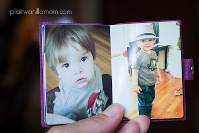 They aren’t kidding when they say in most cases they can ship your album within two days. I was surprised at just how fast mine arrived! My first thought when I saw it was that it would make a really cute gift. What Grandma wouldn’t love this as a brag book for any reason? My second thought was what a great little album for Mr. C. Apparently he thought so too as he quickly snatched the little album off the kitchen table and plopped himself right down on the floor to look through it. He started flipping pages and naming everyone and everything in the pictures. He loved it. All the more reason to get one on a key chain to affix to the diaper bag. Are your kids as entertained by pictures as mine?