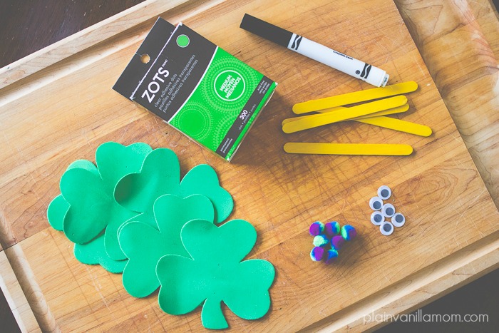 - Foam shamrock shapes. I found ours at the dollar store but you could easily cut shamrock shapes out of foam sheets instead.