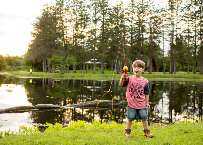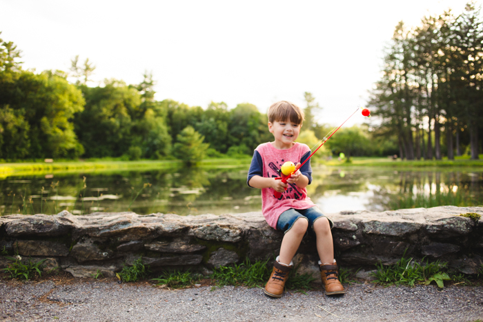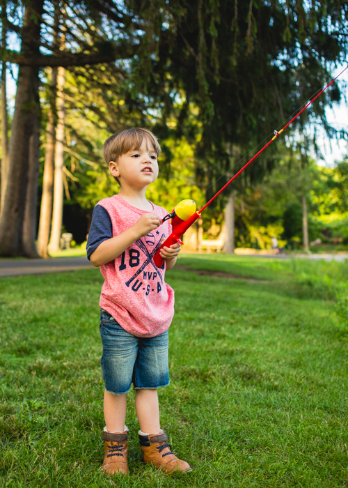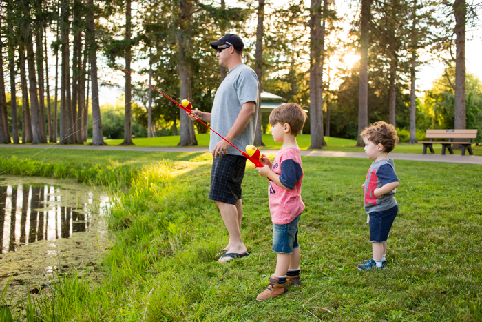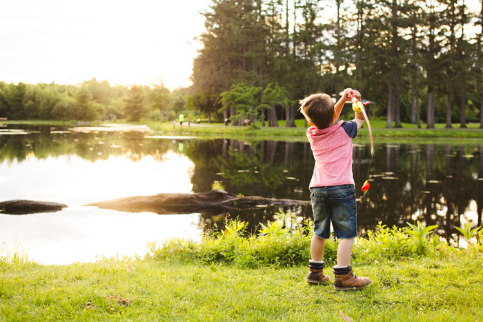 We have the perfect spot just minutes from our house in the form of a local nature park which makes it really easy to take the boys there any night of the week for an after dinner stroll, or to throw a few casts into the pond. Most of the time they don’t even care if they catch anything. My two year old would stand there casting for hours.